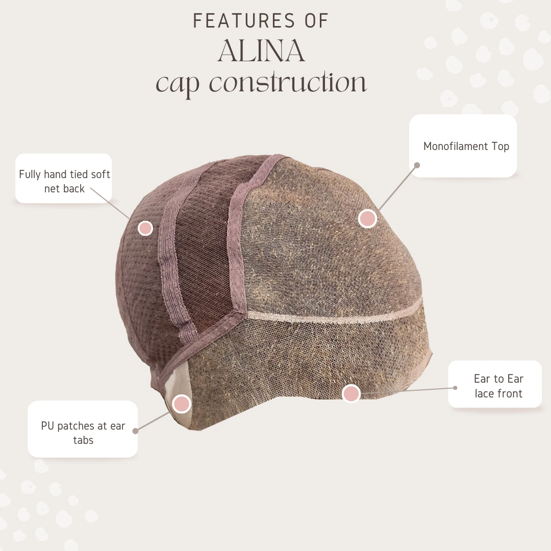 Alina from The Orchid Collection is a short-length human hair wig. This straight wig is a salon-inspired choppy bob. Alina is one of a kind and must-have wig. Alina’s cap construction is unique and has many features. This style is hand-tied with a monofilament top, lace front, soft net, and PU ear tabs (ear-to-ear lace). It provides the ultimate in versatility and comfort.