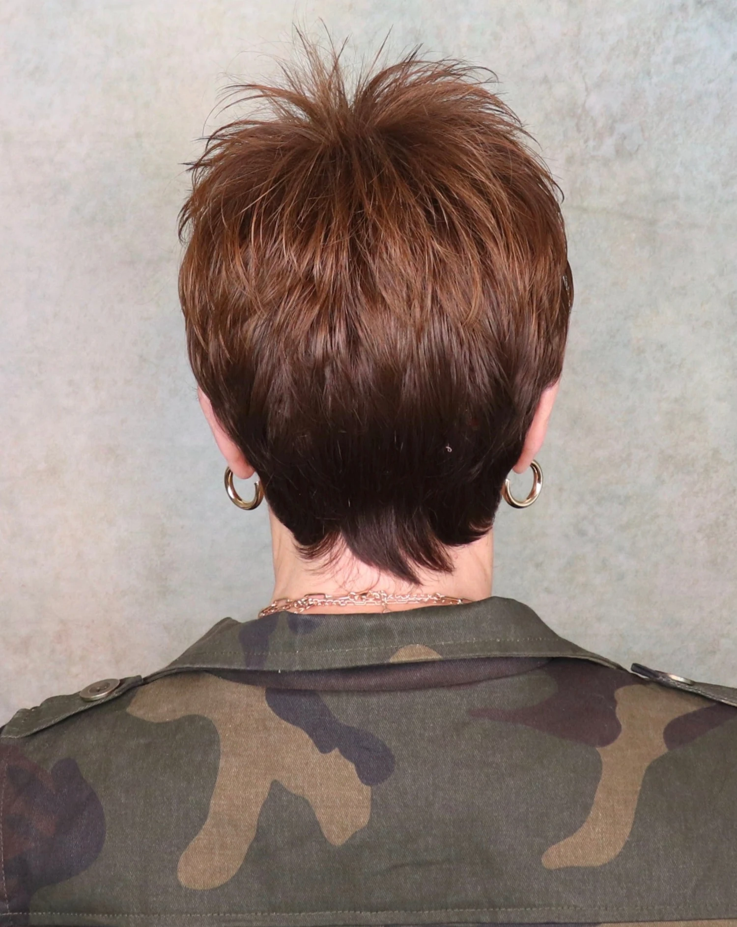 Bliss from the Ellen Wille Changes collection is a short stylish pixie with longer lengths at the top to allow for versatile styling. The textured layers at the top create some lift that can be styled forward or swept to the side. The extended lace front creates a natural-looking hairline that extends from ear tab to ear tab, while the mono crown creates a look of natural hair growth in the crown area and some natural volume.