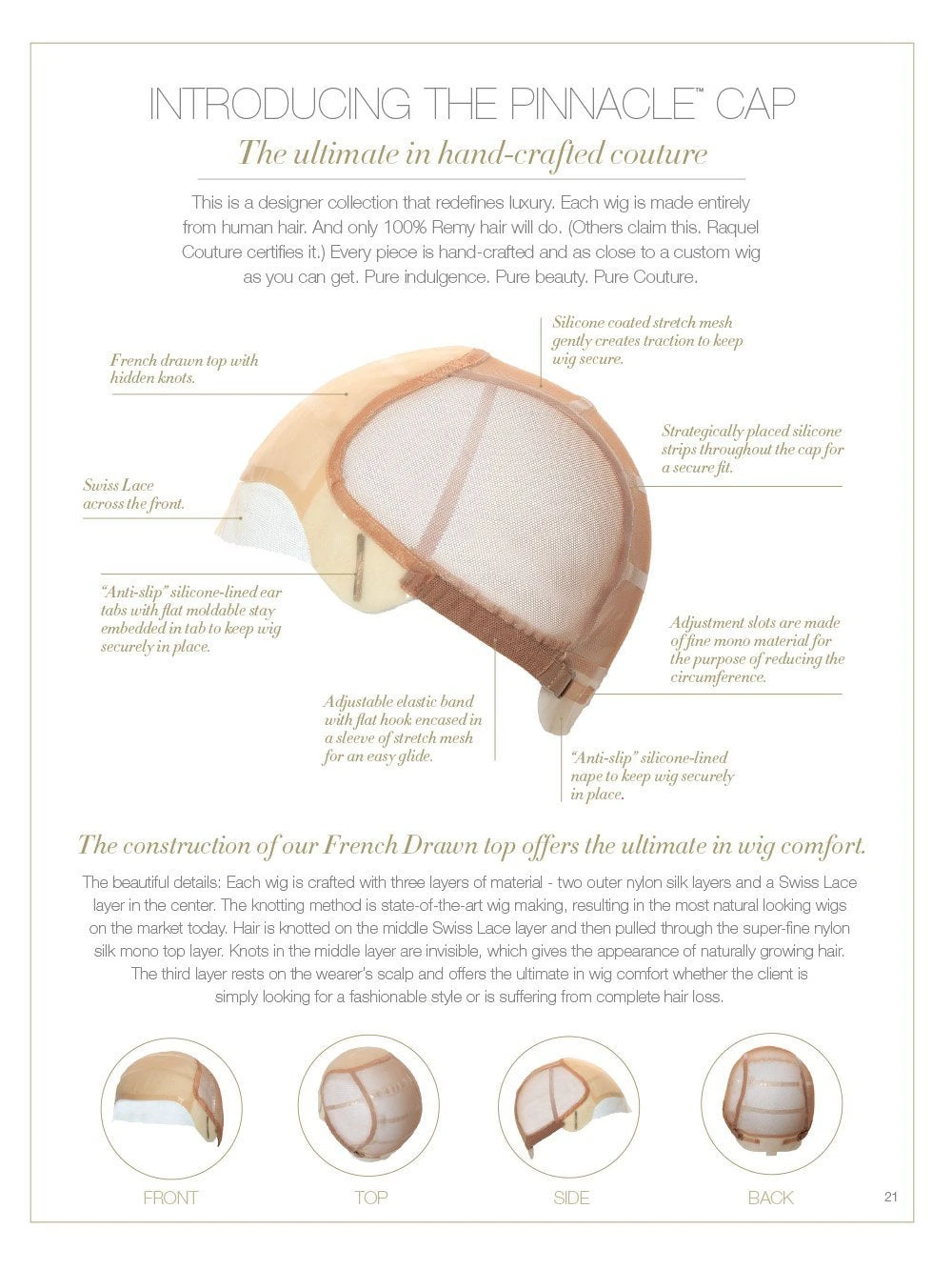 - Pinnacle™ Cap– The cap construction is designed with Silicone Coated Stretch Mesh and strategically placed Silicone Strips that work together throughout the cap to offer the ultimate secure fit.