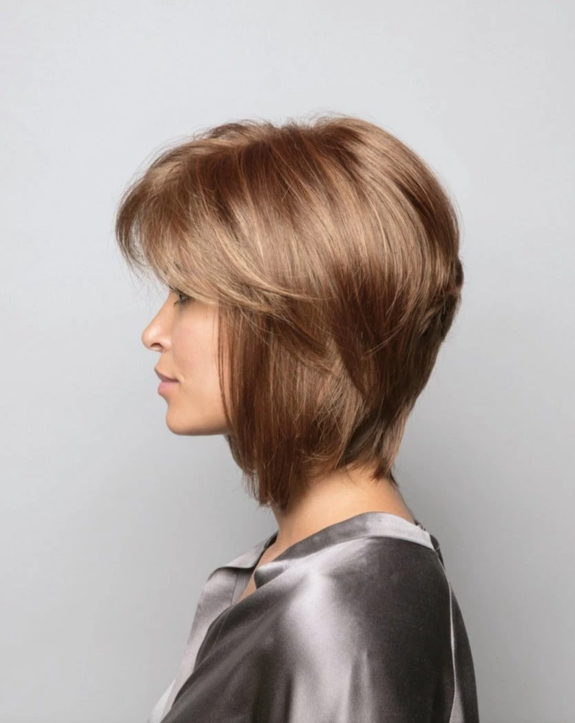 Cameron from our Rene of Paris Hi-Fashion Collection is a short-length synthetic wig. This straight ready-to-wear wig is an irresistible bob with casual moment characteristics. Complete your look with this side swept bang and all around layers. Cameron is machine made with adjustable tabs in the back nape area to allow a more comfortable fit. The result is a comfortable fit with a natural look that is both fashionable and easy to wear.