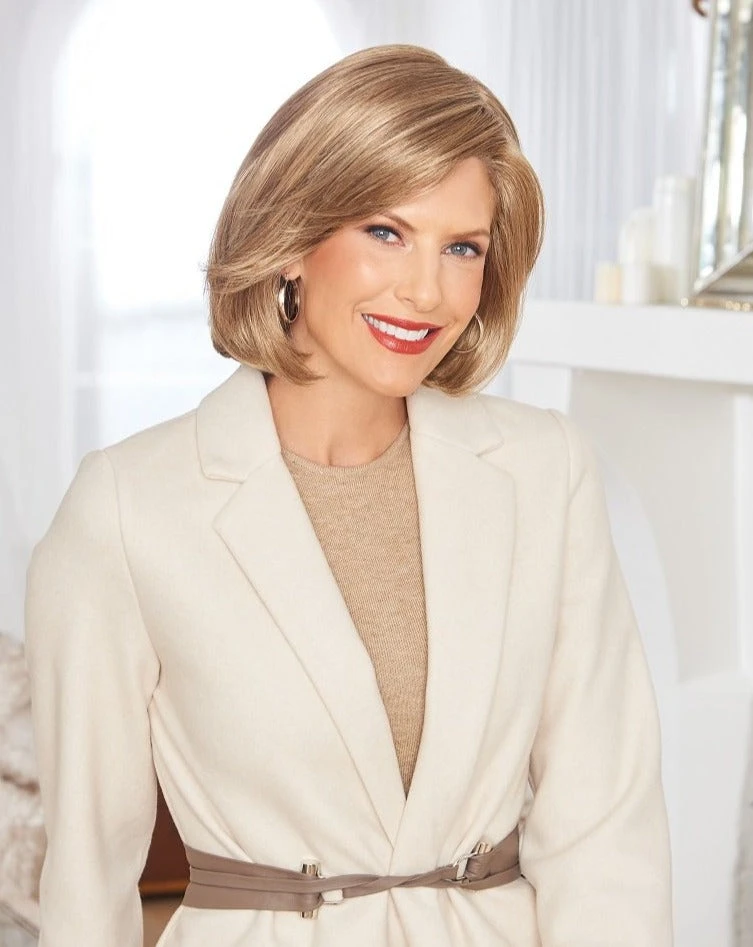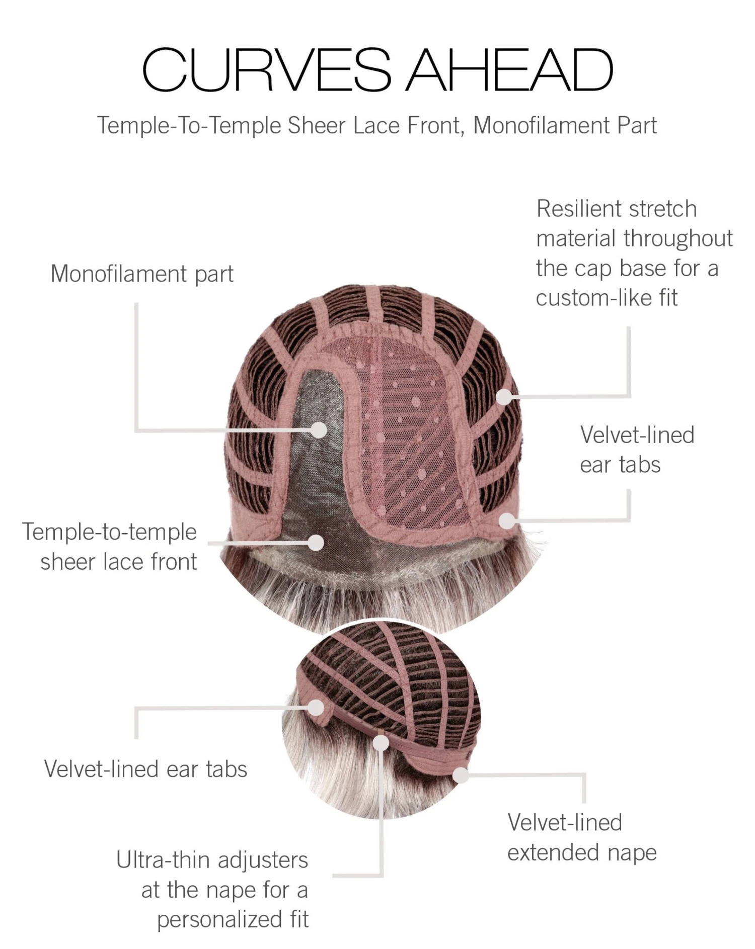 Look no further because this cut checks all the boxes. A sophisticated bang, lovely layers, bouncy body, and let’s not forget a perfect diagonal bang. With an extended lace front and mono side part, looking real is really easy. Simply brush the part, curve the ends under, and go. But look out! With Curves Ahead you’ll have lots of compliments in your path!