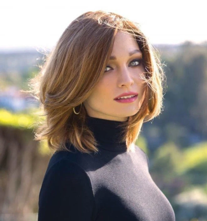 Emily from the Fair Fashion Collection is a medium Human Hair wig. This straight ready-to wear wig is a soft, feminine style designed to give movement and volume. Emily comes in a Natural Cap with lace front which is completely a breathable cap which gives a natural feeling to the wearer. The top part is made with special lace mesh which hides the knots giving the impression that the hair grows directly from the scalp with a very natural look. Other features with the Natural Cap is it’s 100% hand-tied and includes polyurethane patches for an optional use of double-sided tape.