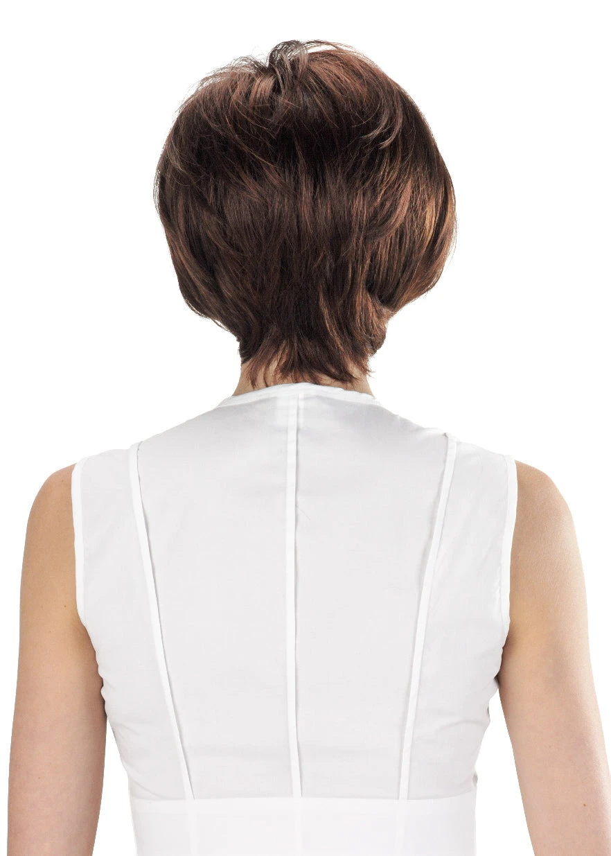 Harlow is a striking short cut that is razored smooth to the ends. It can be worn with blunt or fringed bangs.Â