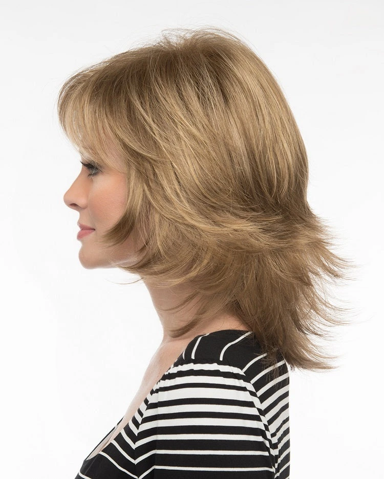 Mila by Envy is a lovely, shoulder-length shag with face-framing pieces that compliment any age and face shape. Dramatic layering gives this look lots of movement and volume, while the Open Top construction keeps things lightweight and comfortable.