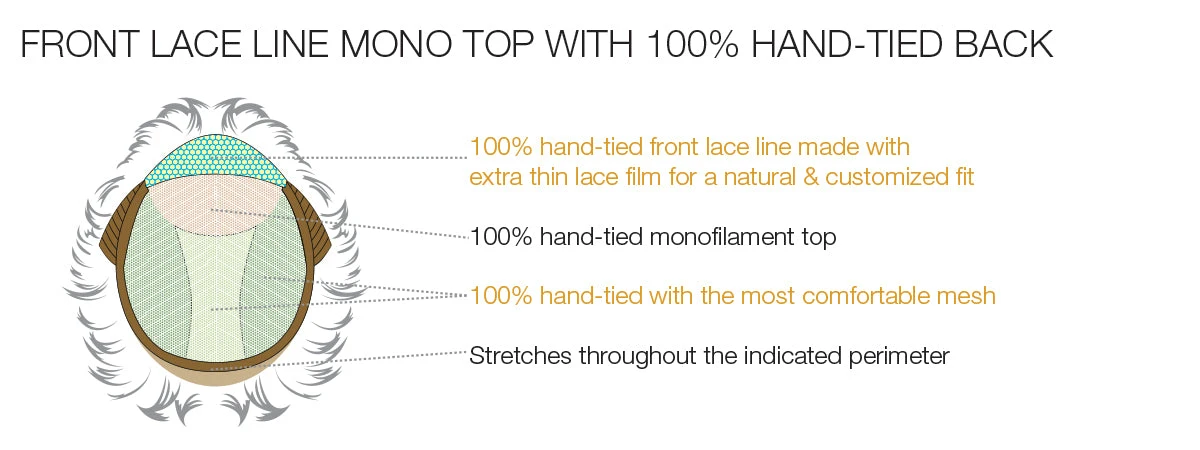 | Cap Construction: | Lace Front | Monofilament | Hand Tied |