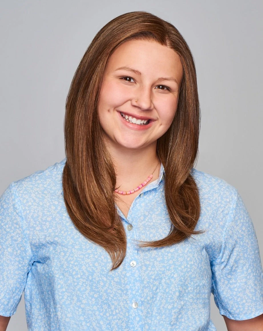 This perfectly sleek, long straight style earns top marks for its sheer lace front and natural-looking monofilament part. Classmates will never guess it’s a wig!